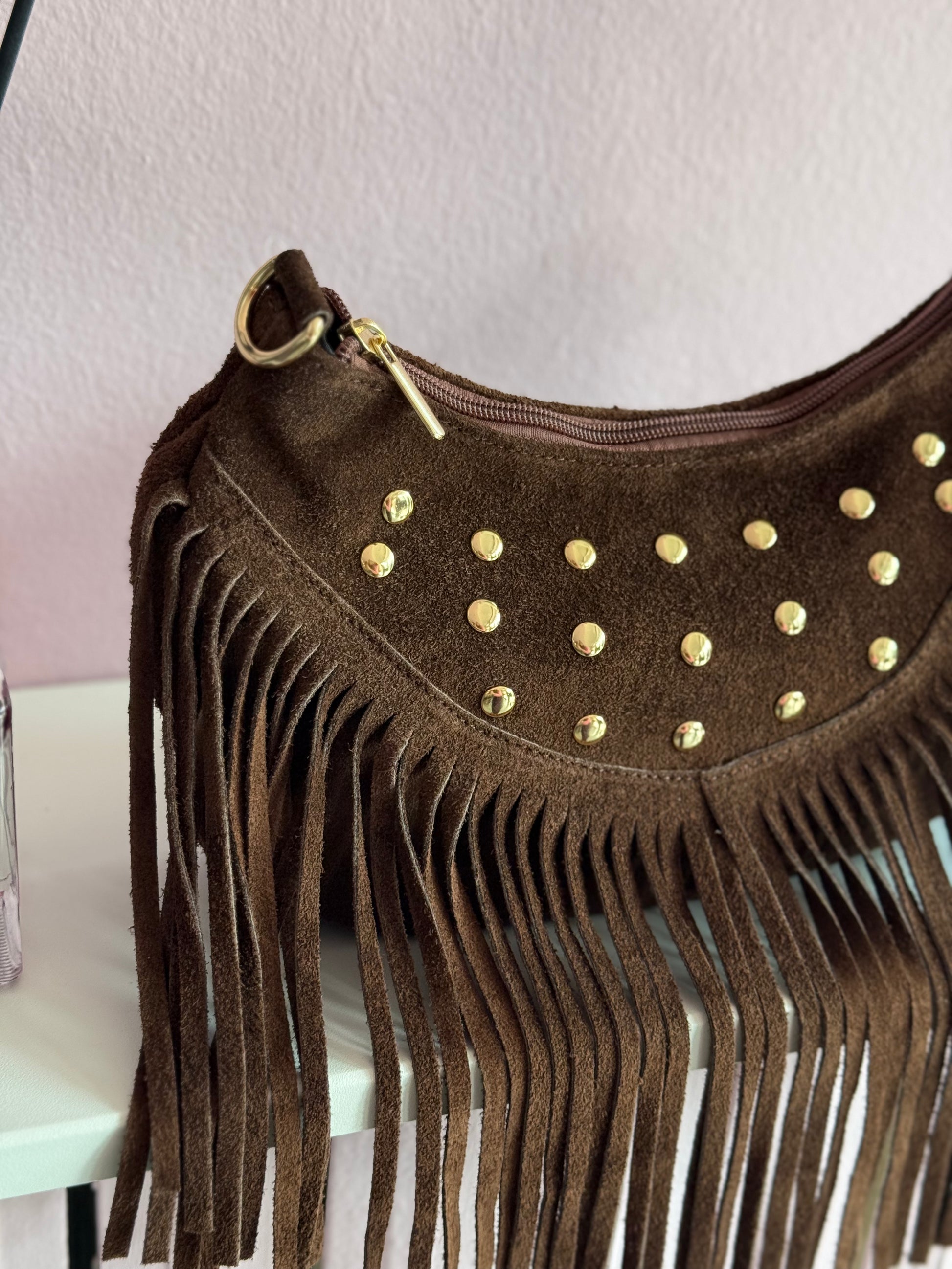 Borsa in vera pelle con frange