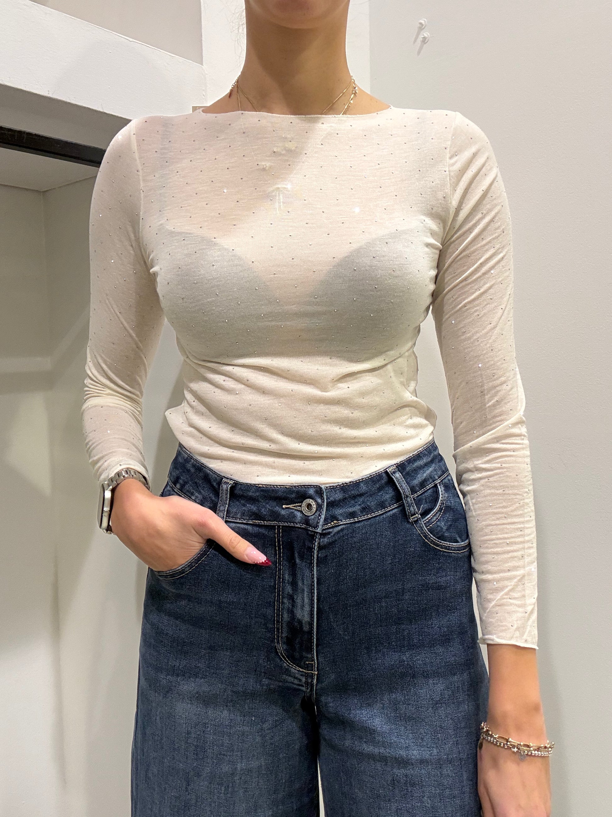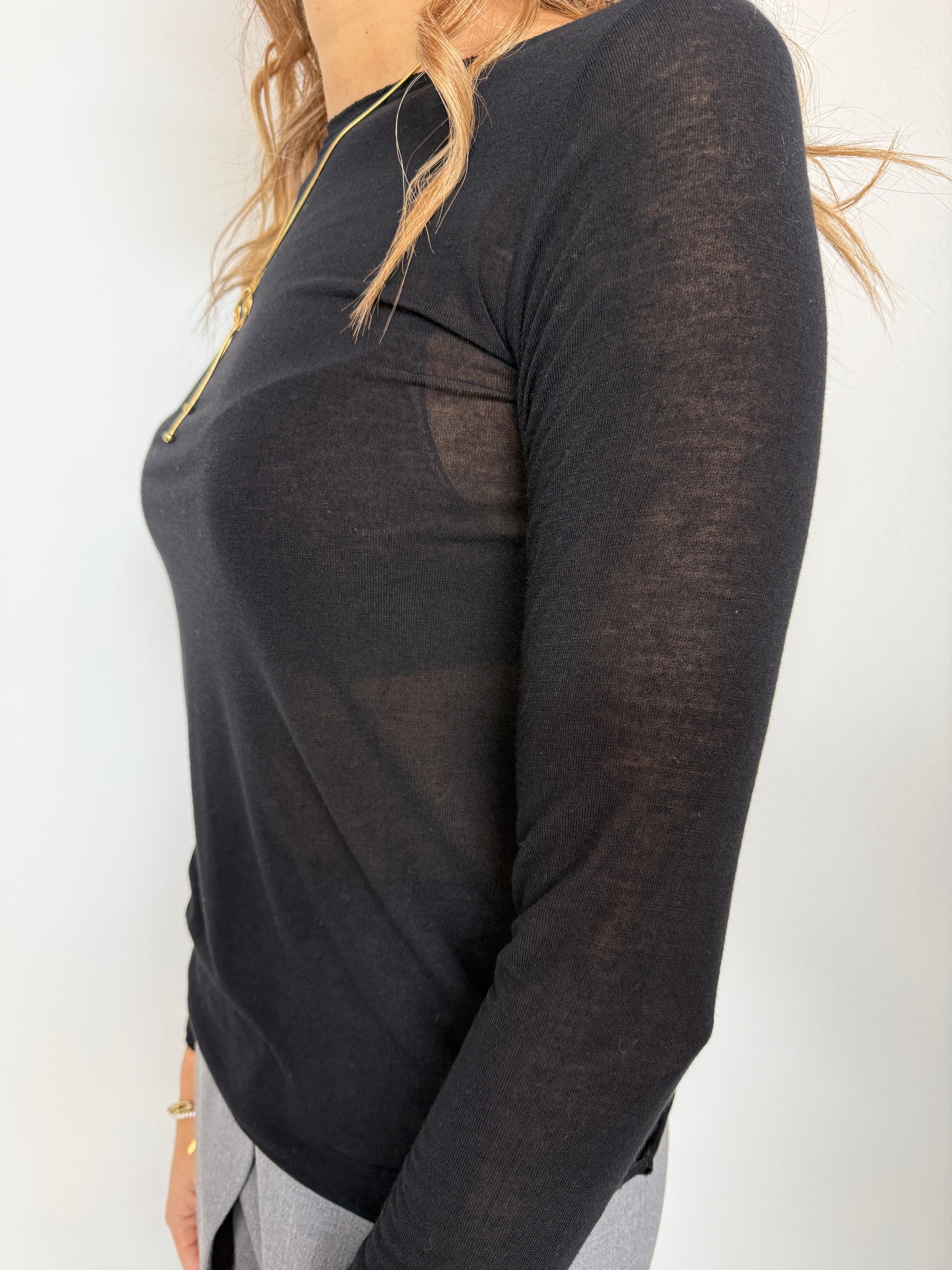 Maglia a maniche lunghe in misto cashmere tinta unita.