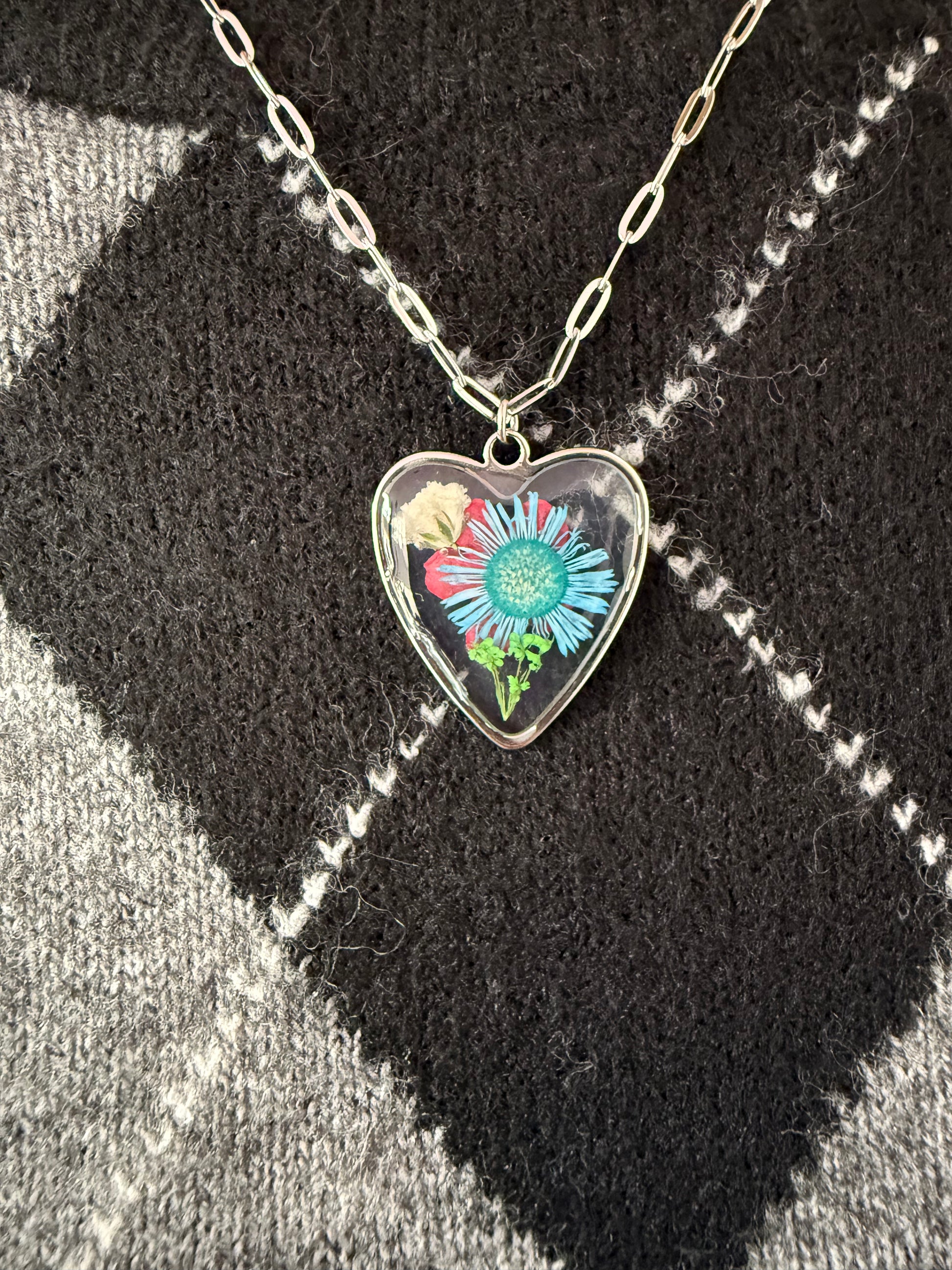 Collana con pendente effetto vetro in acciaio inossidabile, anallergico