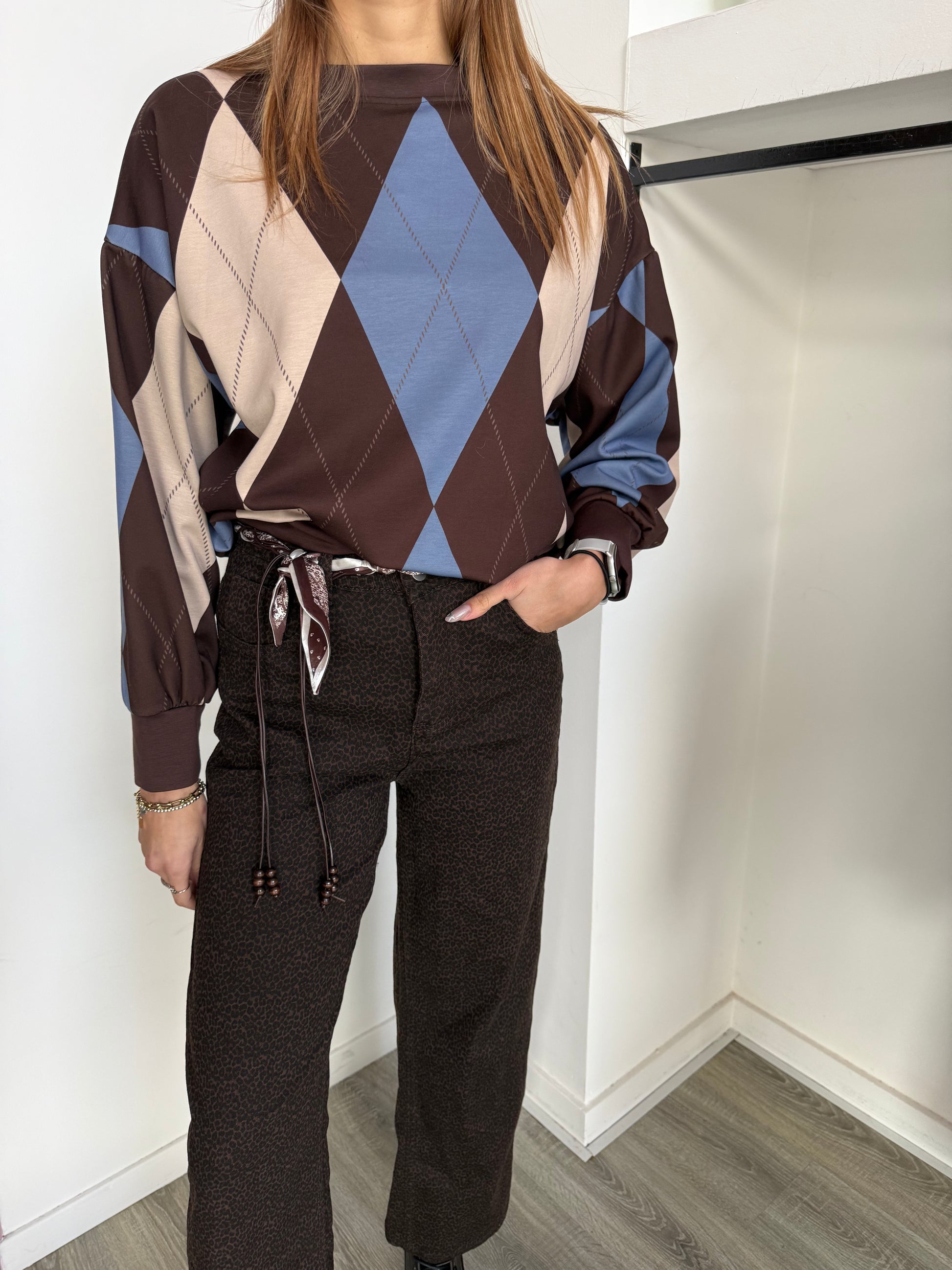 Felpa girocollo con motivo a rombi.