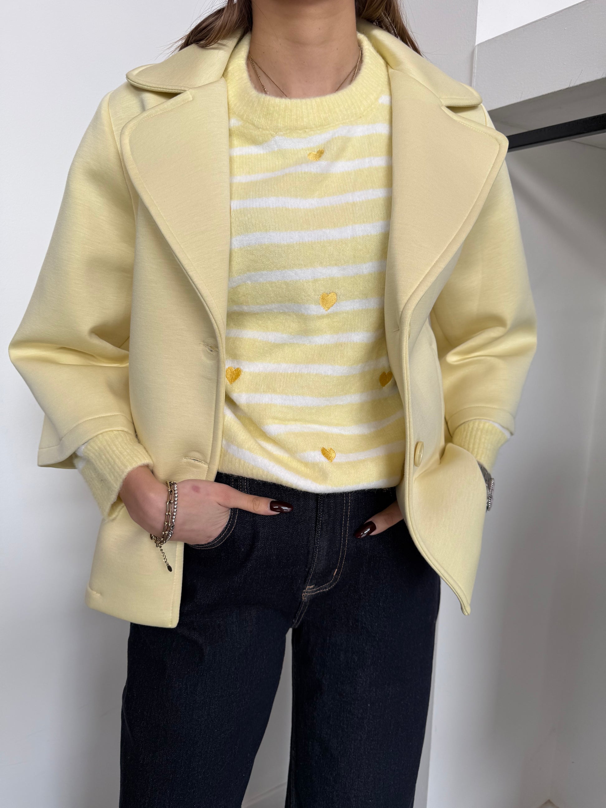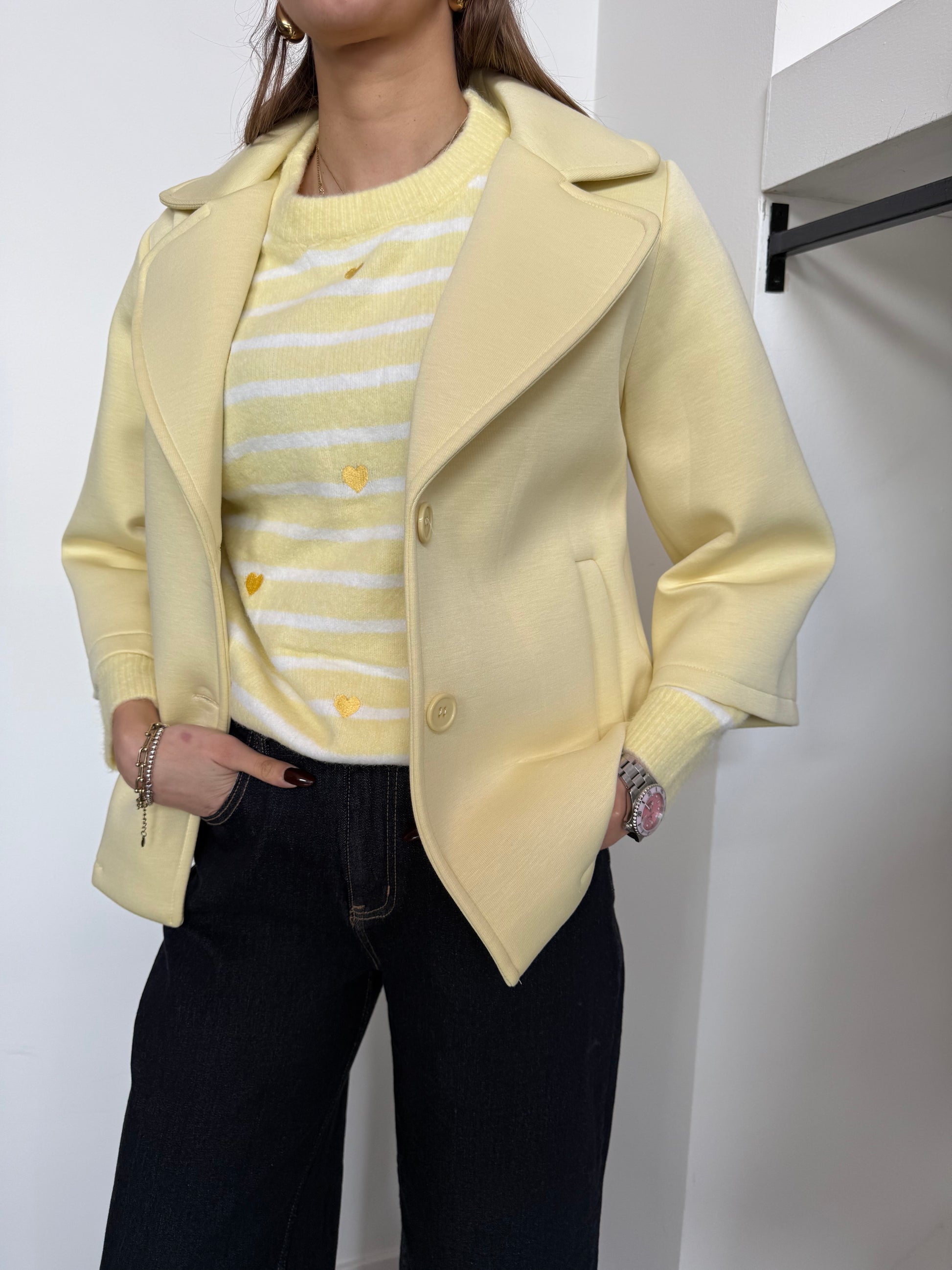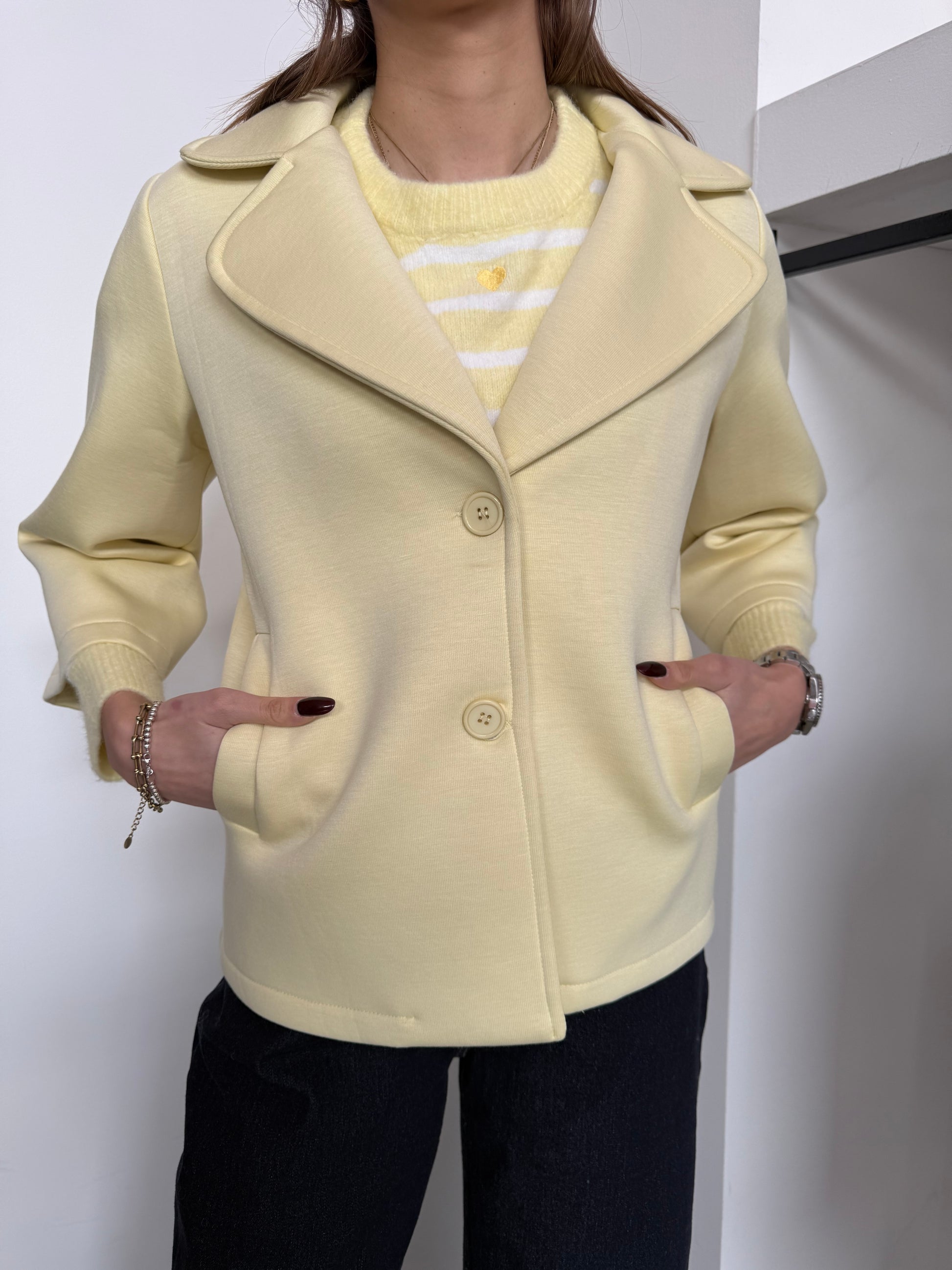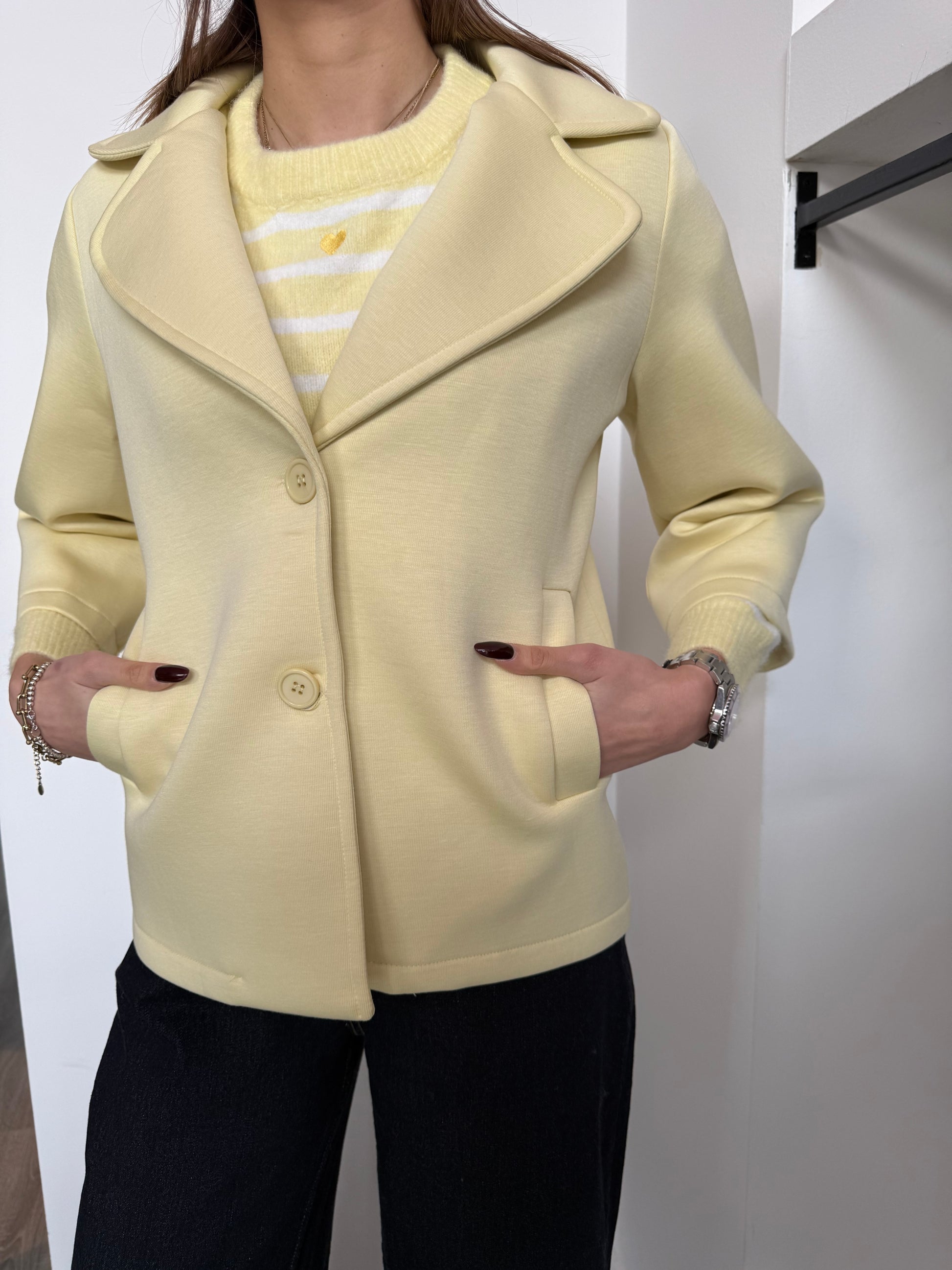 Giacca effetto neoprene con maniche a 3/4.