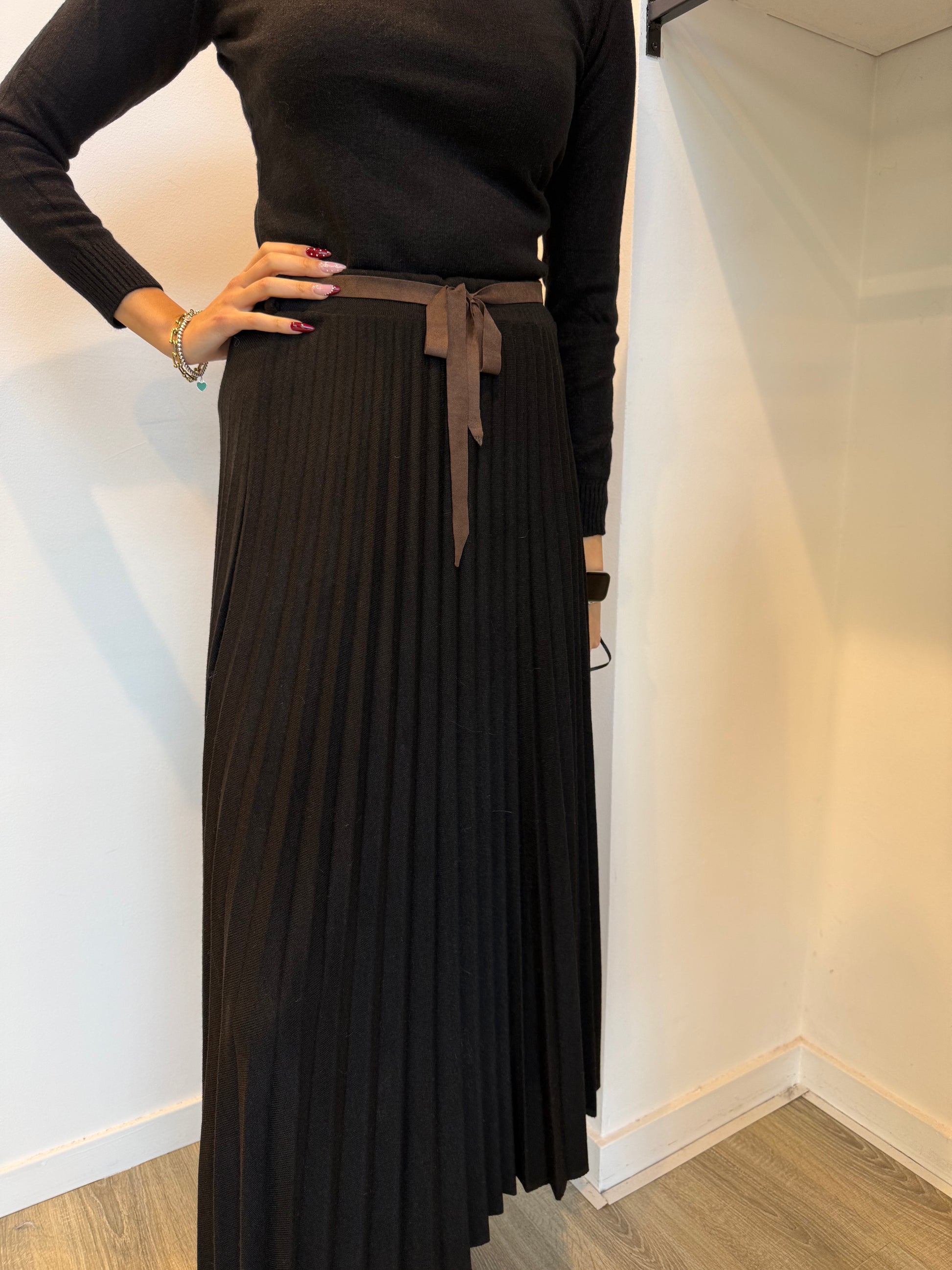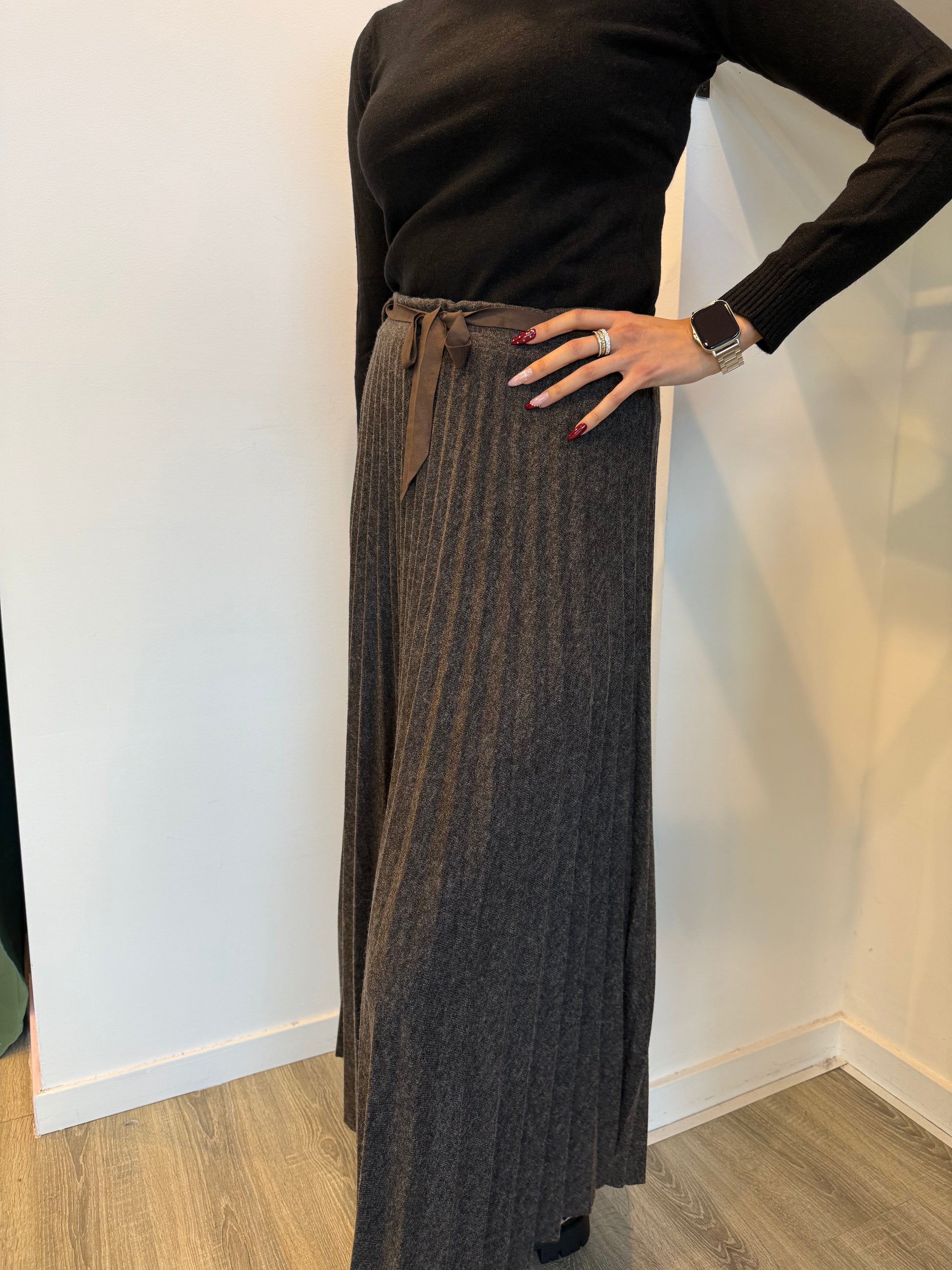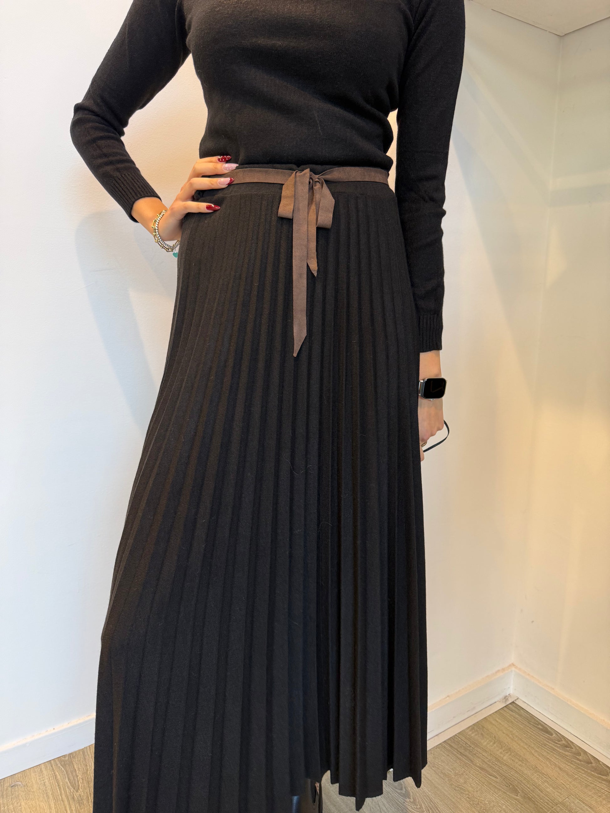 Gonna in maglia lunga plissettata.