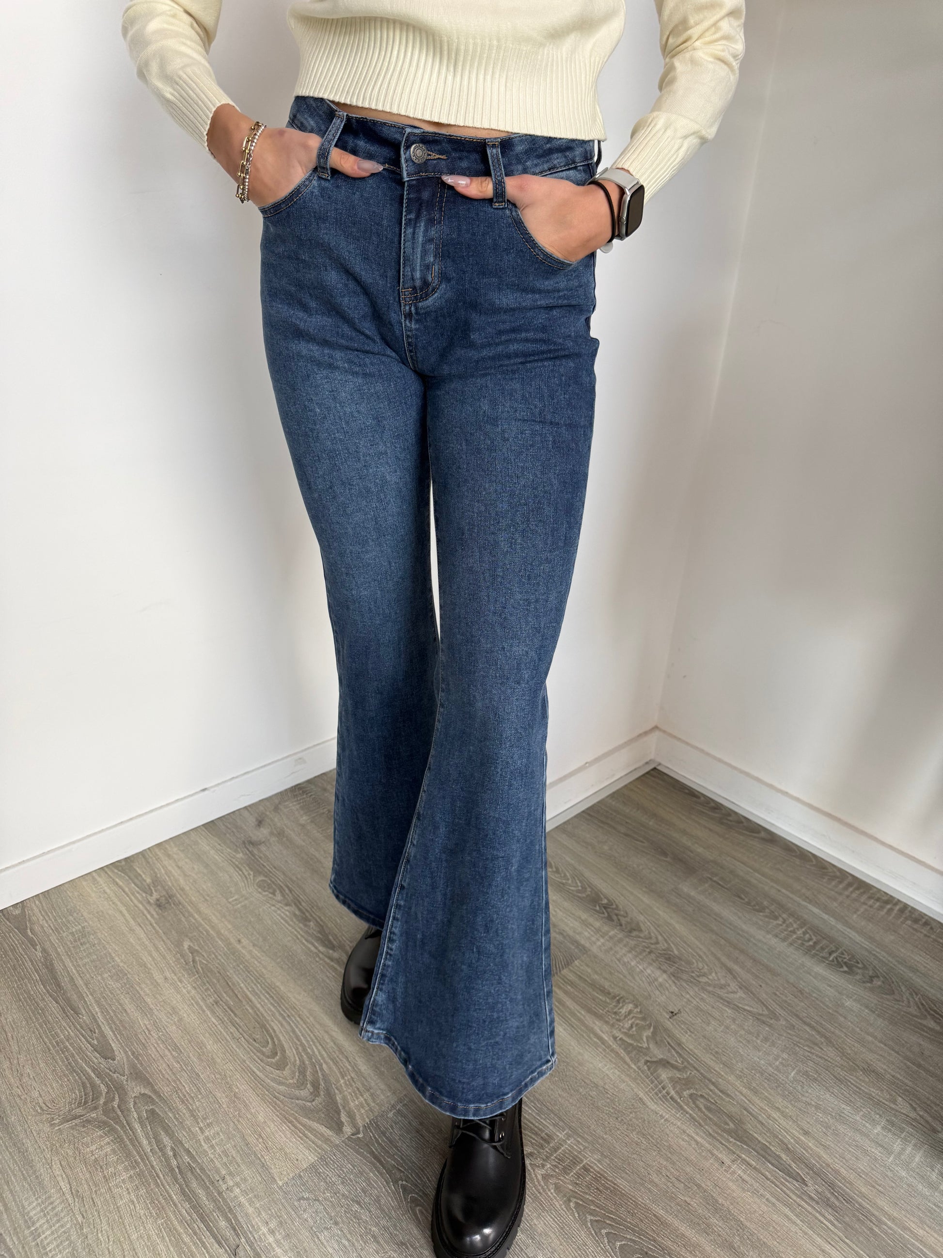 Jeans a zampa, vita media.