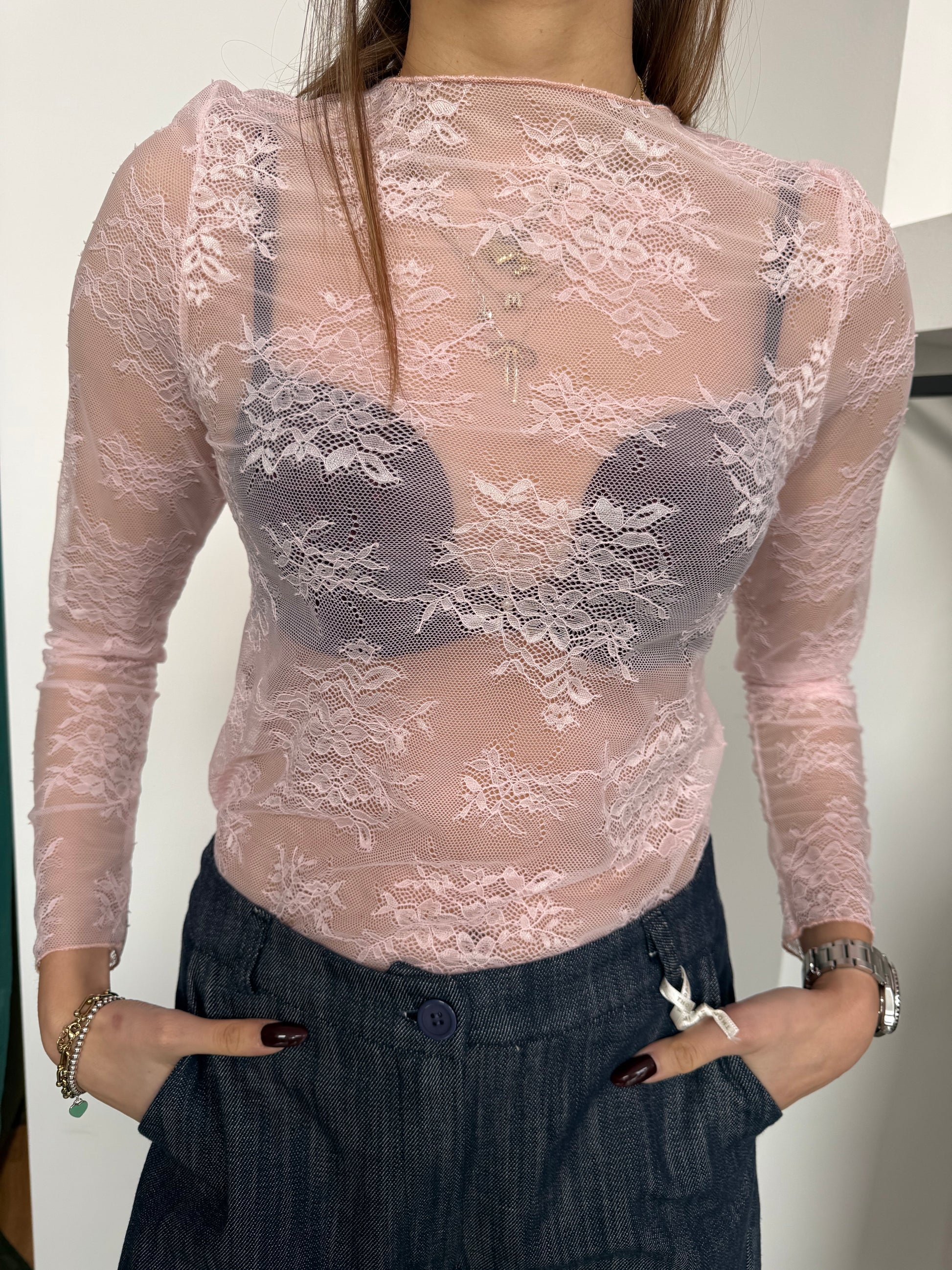 Maglia a maniche lunghe in pizzo.