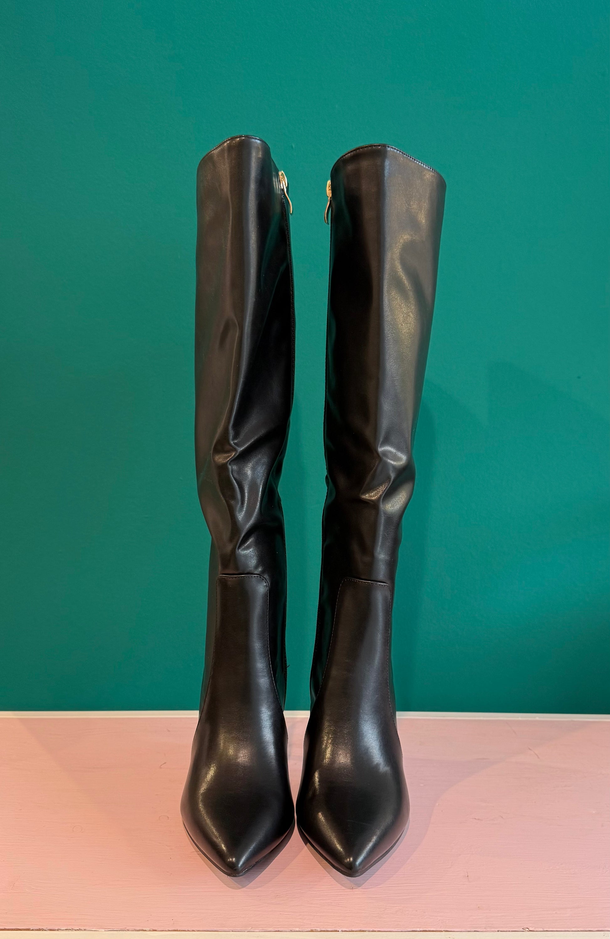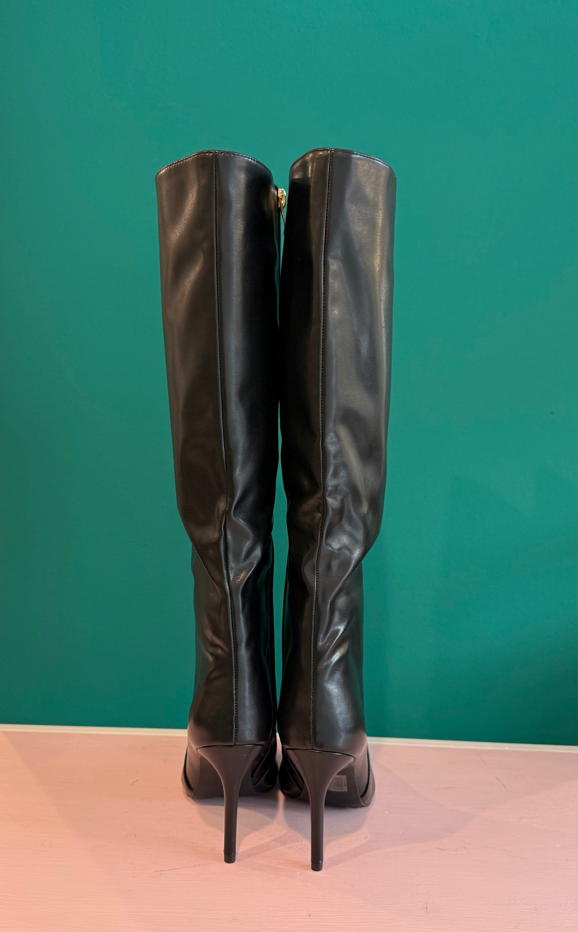 Stivali neri effetto pelle con tacco alto.
